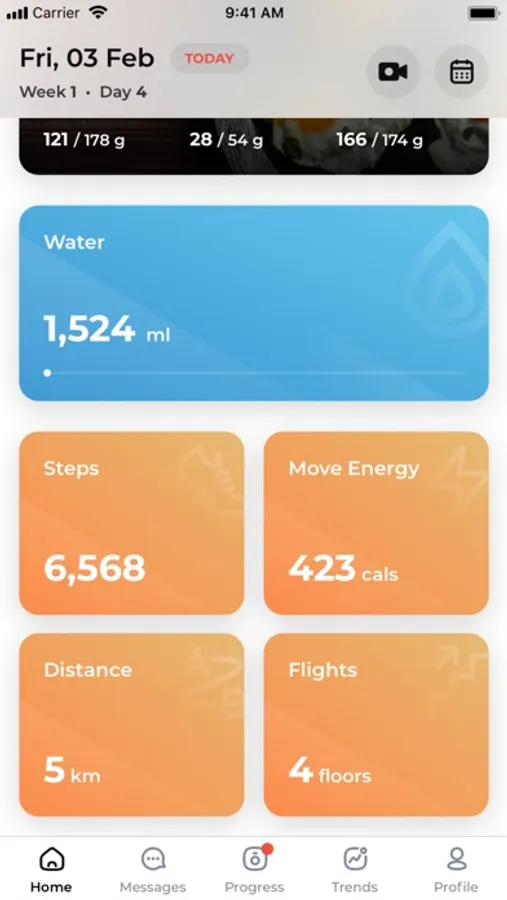 The app integrates with Apple Health to show your daily activity - distance, steps, active energy, and flights to help you better achieve your goals.
