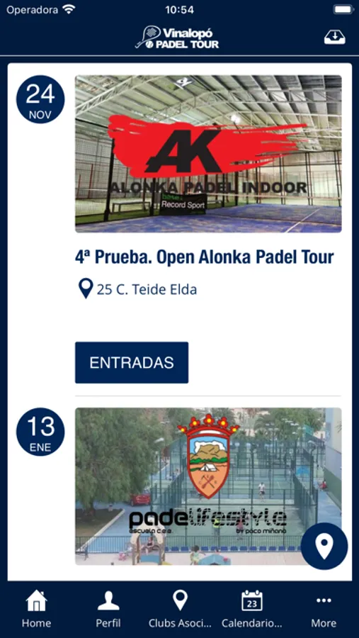 Podrás comprobar las fechas de los torneos, hacer tu inscripción y ver donde se desarrolla el torneo.