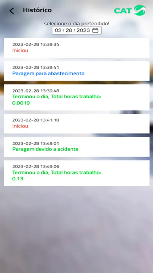 Esse registo pode ser consultado posteriormente através da escolha do dia de trabalho a consultar.