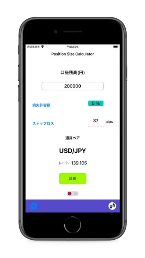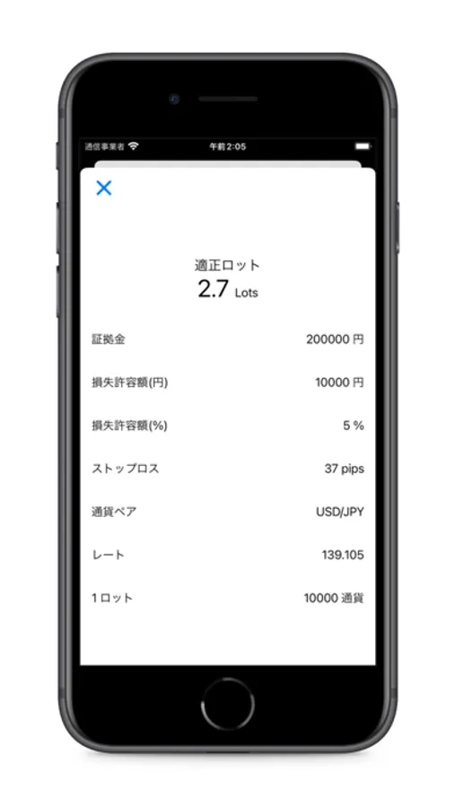 FXのエントリー時(ポジション保有時)に適切なロットを算出できます。