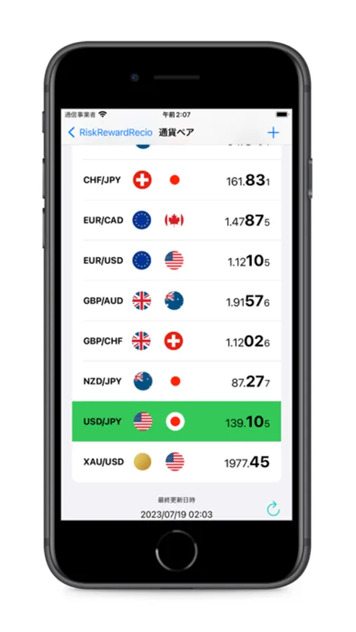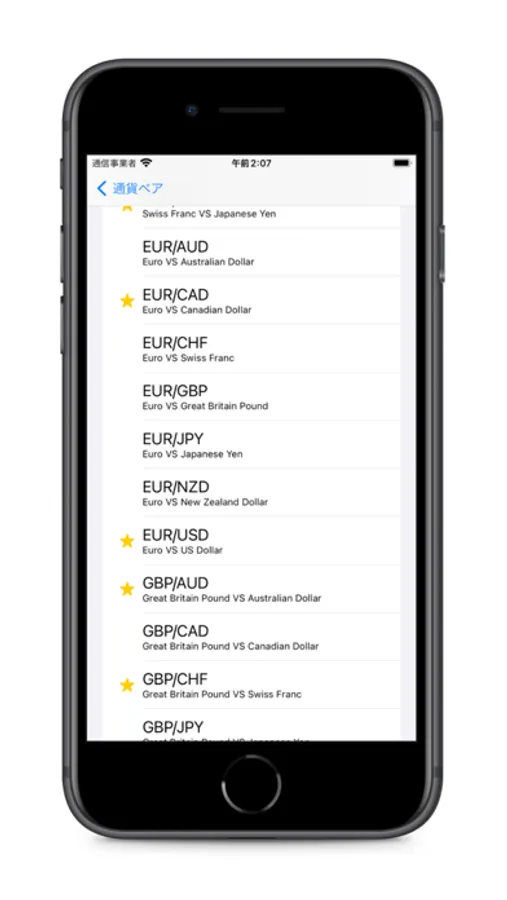 起動時の通貨ペアはアプリ起動時に設定されている通貨ペアを変更することができます。