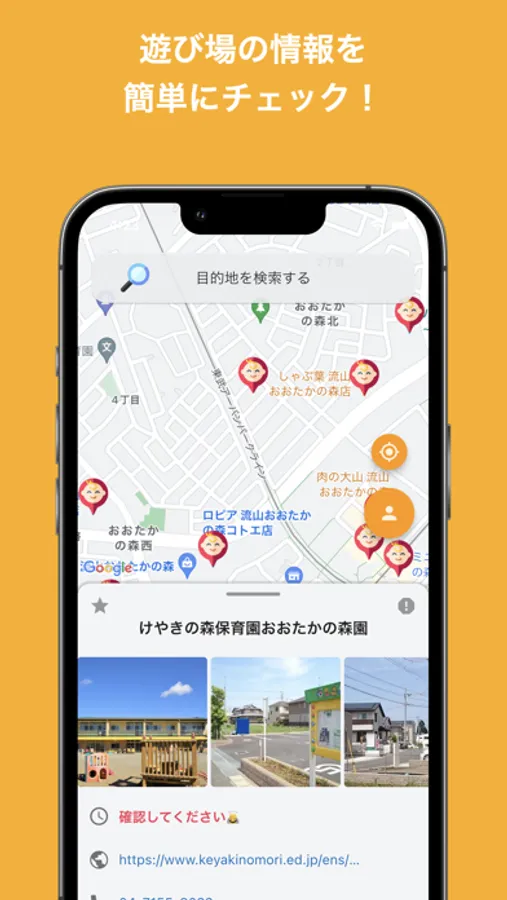 好きな遊び場を検索したり、選んでナビゲーションを開始できます!