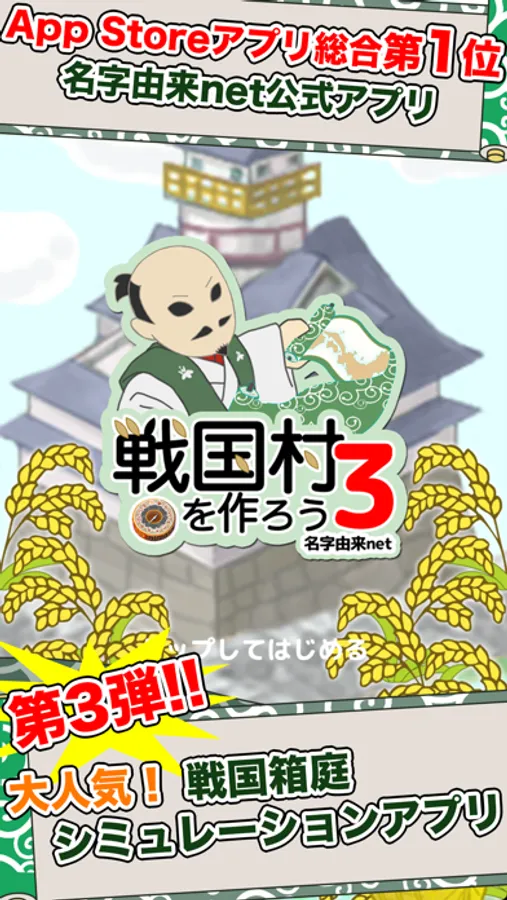 名字(苗字)に興味のある方もない方も、自分の名字を冠した村を成長させ、天下統一を果たすことができるゲームです。ランキングでは日本中・世界中で最も強い村と村の発展を競うことができます。家族が少人数化していく現代だからこそ、稲を刈り自分の家族を増やし、村が大きくなる醍醐味を体験しましょう。大ヒットゲーム「戦国村を作ろう」の第三弾、群雄割拠の戦国時代を舞台にした「稲刈り村育成型シミュレーションアプリ」です。