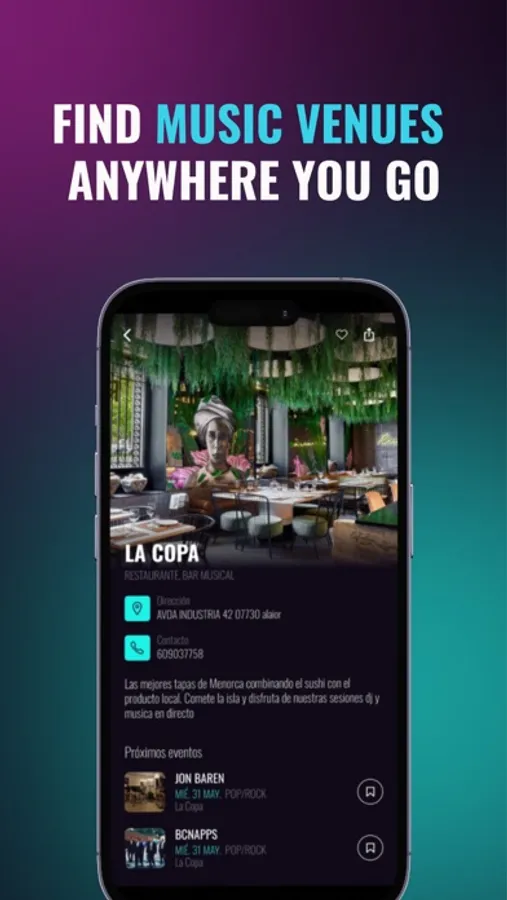 If you are LOCAL, you can create a profile so that both users and artists can contact you, you can have photos of the space, the menu or the different services you offer, capacity to be scheduled in advance... In short, achieve greater visibility to your business.