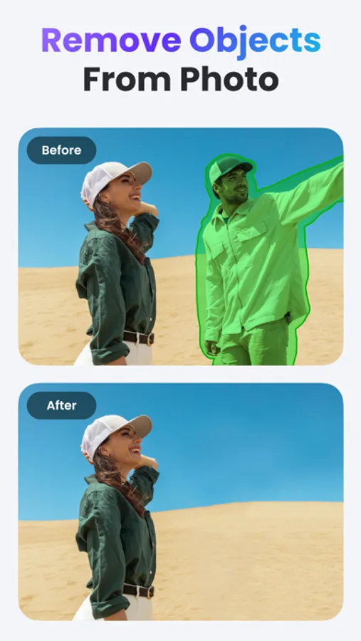 - Instantly remove unwanted objects in your photos with magic eraser.