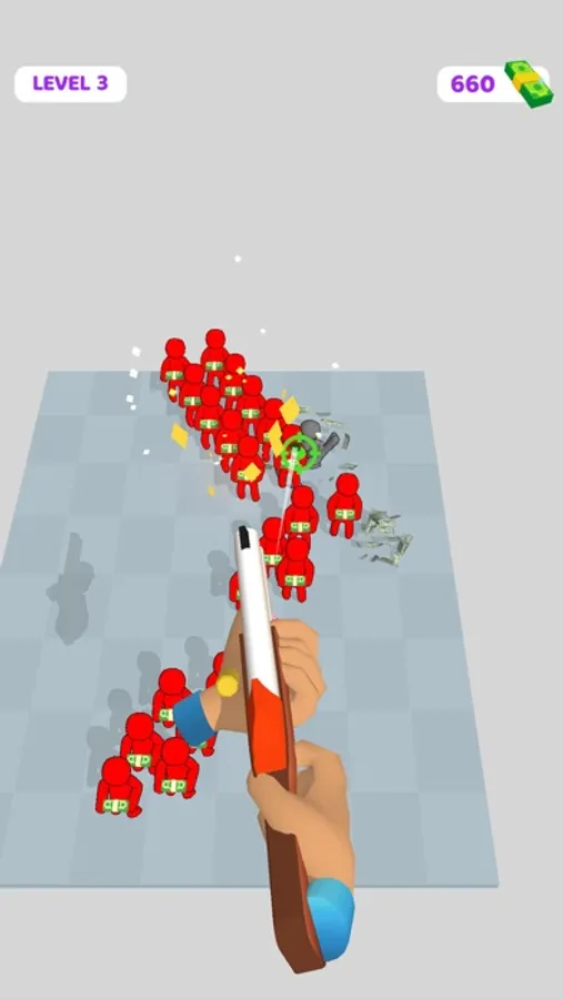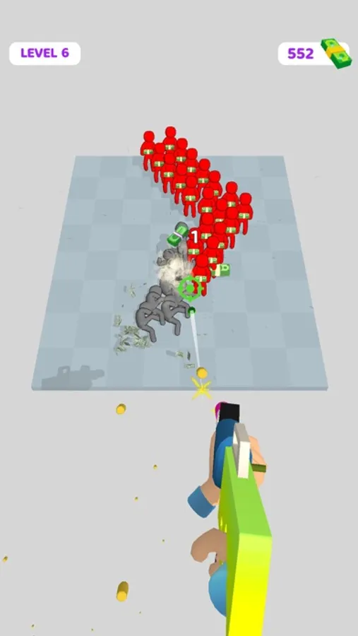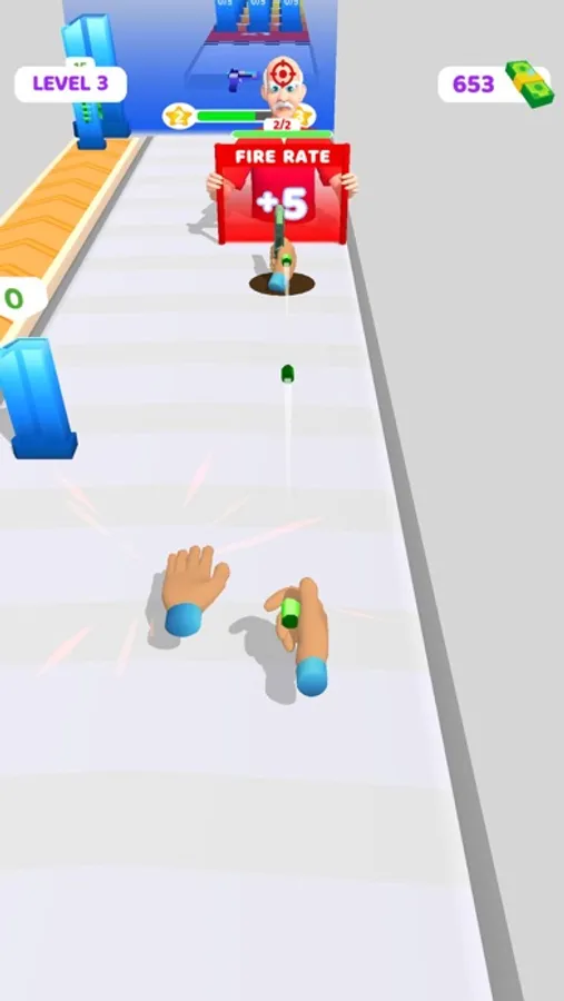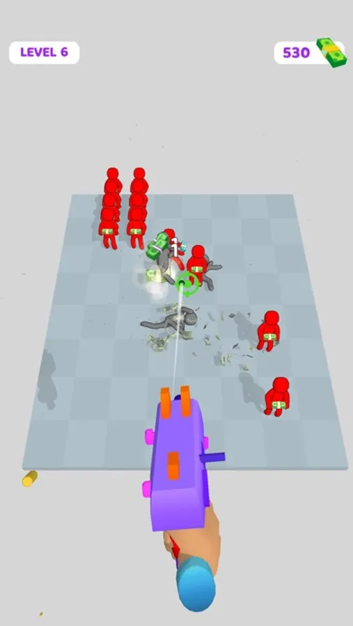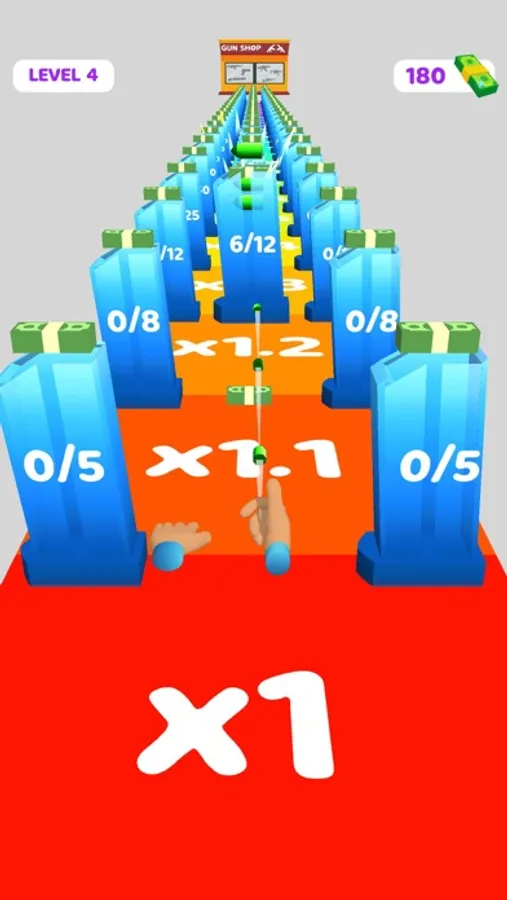 Fill the magazines to have better weapon then shoot stickmans to get money! You can use your bullets to fill magazines and also shoot the oldmans to be able to get the effect of gates by the help of hands on your path!