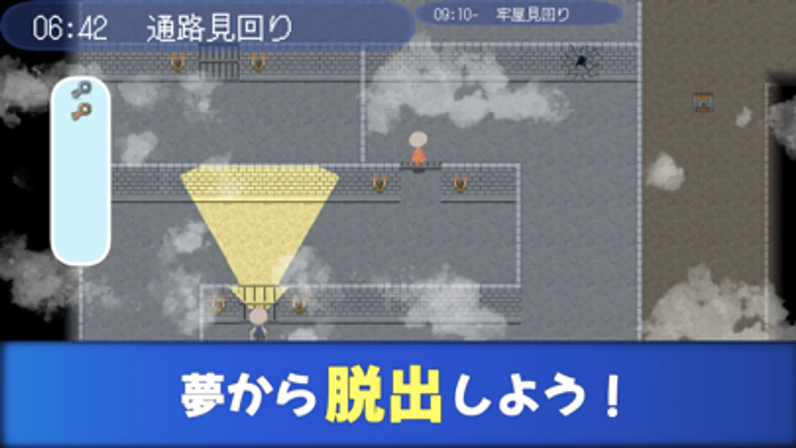 Escape RPG: Prisoner and Jailer is an exploration role-playing game in which the player aims to escape from a dream prison world by collecting items and evading the gaze of the jailer who moves according to a predetermined schedule.