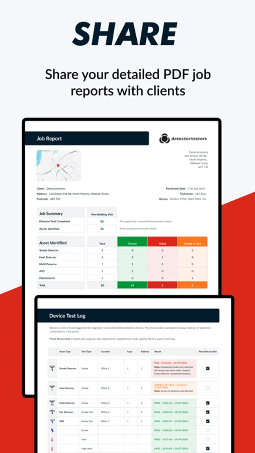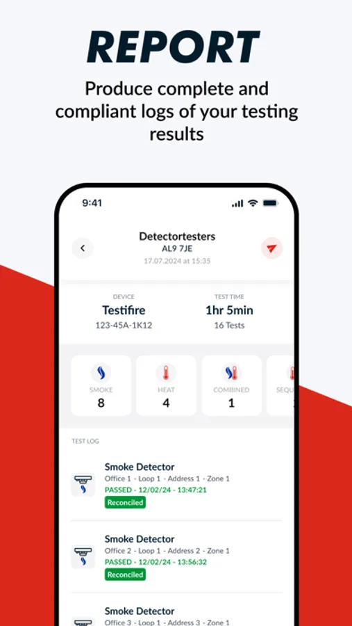 A report is automatically created in the app as testing is carried out, combining all the data needed to prove testing has taken place and confirming the status of each detector: