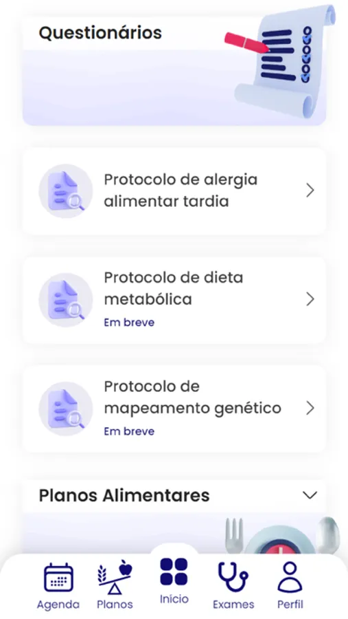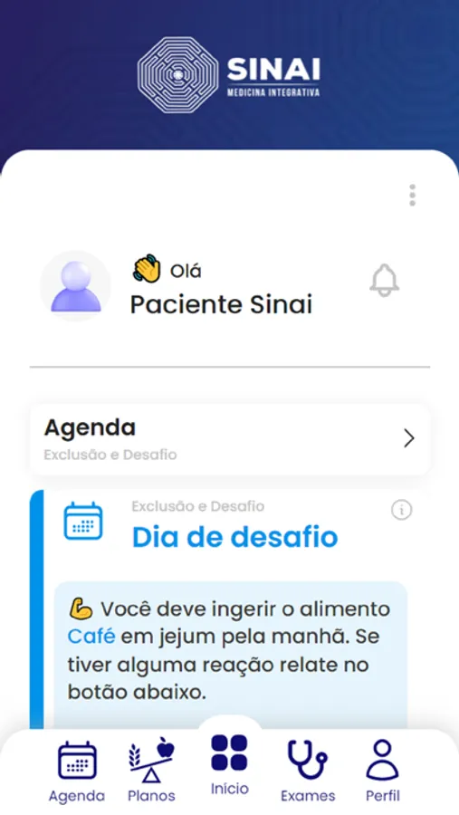 Com o aplicativo da Clínica Sinai você pode gerenciar seus questionários , verificar seus planos alimentares e sua lista de compras.