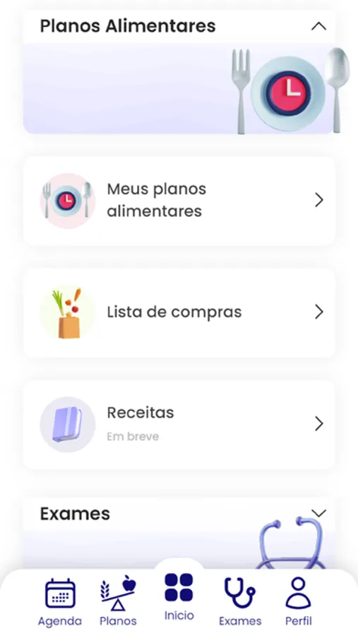 Podendo também visualizar suas orientações médicas e de nutricionistas assim como seus exames realizados na clínica.