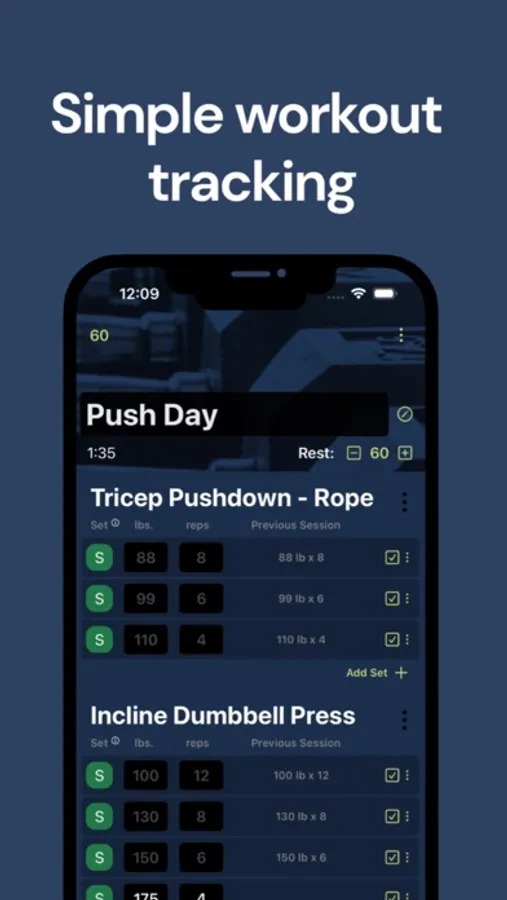 - Easily copy your sets from last week (or last session) and easily add 5lb to each set in the spirit of Progressive Overload