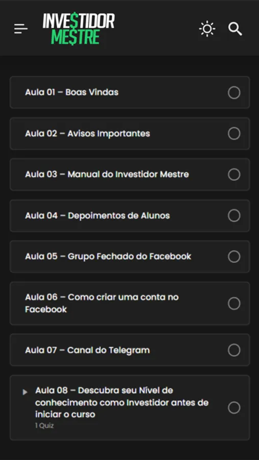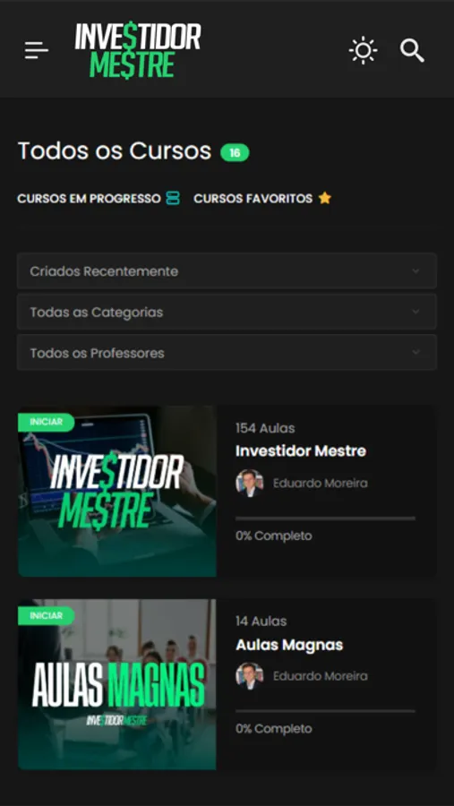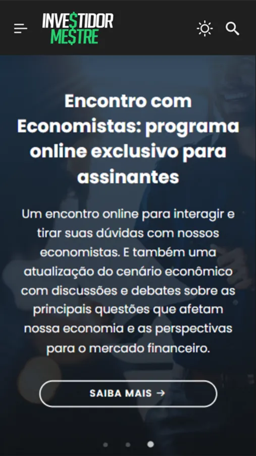 Plataforma de acesso exclusivo para assinantes do Investidor Mestre, um produto que entrega à você todo o conhecimento que você precisa para fazer as melhores Estratégias de Investimento com foco em Geração de Renda e Construção de Patrimônio no Mercado Financeiro.