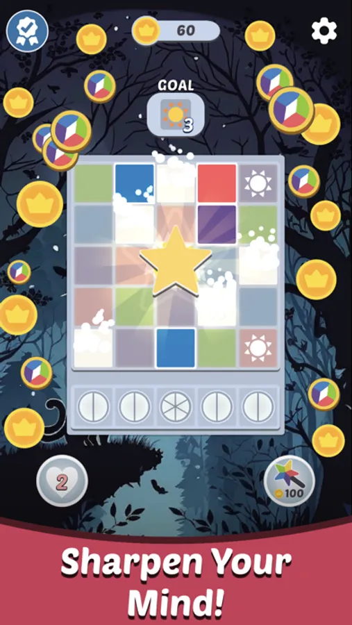 With a 5x5 grid of tiles, your goal is to create patterns of colors, similar to Sudoku. Play for as long as you can without running out of moves to beat your high score or test your skills and see if you can complete the weekly Challenge!