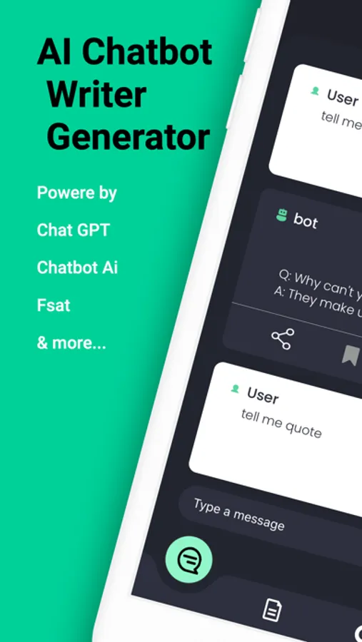 Welcome to AI ChatBot This app is designed to help you get instant answers to any question you have, fast and conveniently. It can understand natural language and generate insightful real-time responses to your query. Whether you have a general query or a specific one, Chatbot AI can be your companion. Plus, it's powered by an intelligent AI algorithm, so you can expect precise and accurate results! Download the app today and find the answers to all your questions !