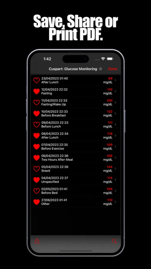 Cuspart: Glucose Monitoring App is designed to facilitate your blood sugar tracking and support your health management with its user-friendly interface, PDF saving feature, and reminder functionality.