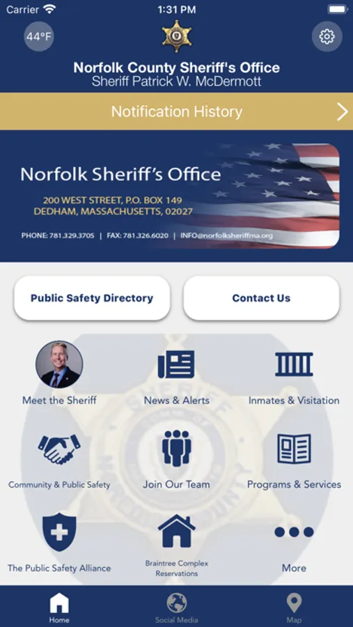 The Norfolk County Sheriff’s Office (MA) mobile application is an interactive app developed to help improve communication with area residents. The Norfolk County Sheriff’s App allows residents to connect with the Norfolk County Sheriff’s Office and learn about services the office provides, while providing the community important public safety news and information. The app also helps formerly justice-involved individuals connect to community supports and outside resources. The app is another public outreach effort developed by the Norfolk County Sheriff’s Office to improve communication with county residents and visitors.