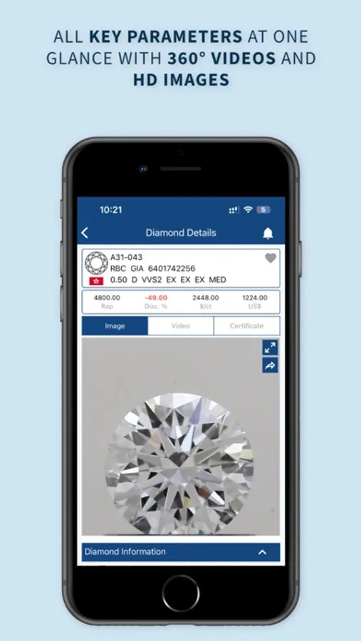 Gem R You’s newly developed app gives you access to diamonds from one of the largest manufacturers of GIA Certified Diamonds with HD images, 360 degree videos and full diamond details for every stone.