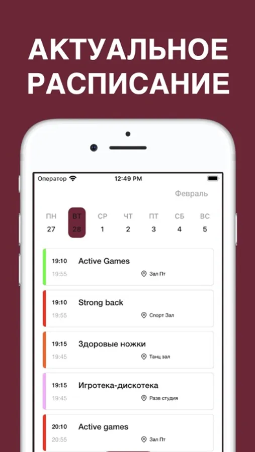 Приложение имеет удобный и понятный интерфейс, который позволяет быстро находить нужную информацию и легко управлять своими занятиями.