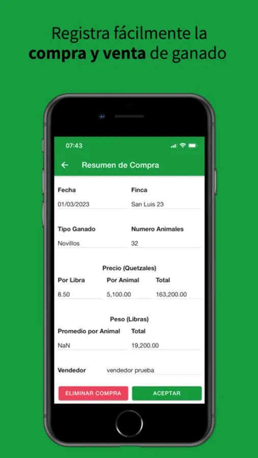 Nuestra app también incluye un marketplace donde puedes comprar y vender ganado.