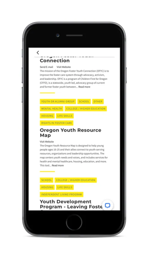 An app designed for youth in foster care or with experience in foster care to find help, opportunities, and connection to others who understand the often complex and overwhelming experience of being in foster care.