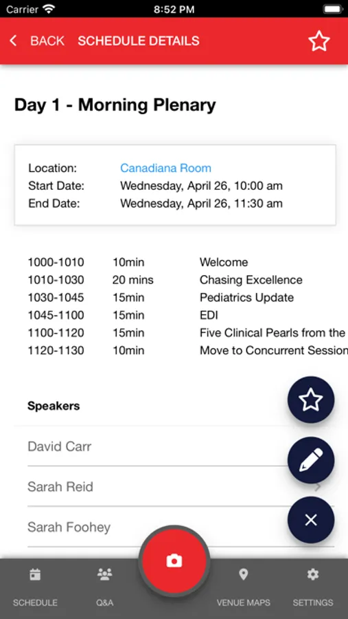 For contact sharing, scan the QR Code on the contact’s badge. Scanned contacts will save basic name information at the time of the scan. Users can select qualifiers or add notes for their scans. The app also allows the user to view, edit, or delete all scanned contacts.