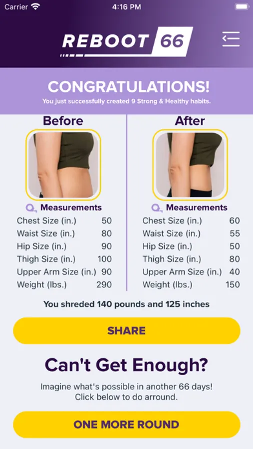 Transform your fitness journey with our app! Our user-friendly interface makes it easy to enter and track your daily activity, including progress pictures, weight and body measurements. Plus, compete with friends and stay motivated with reminders and easily sharing/bragging about results.