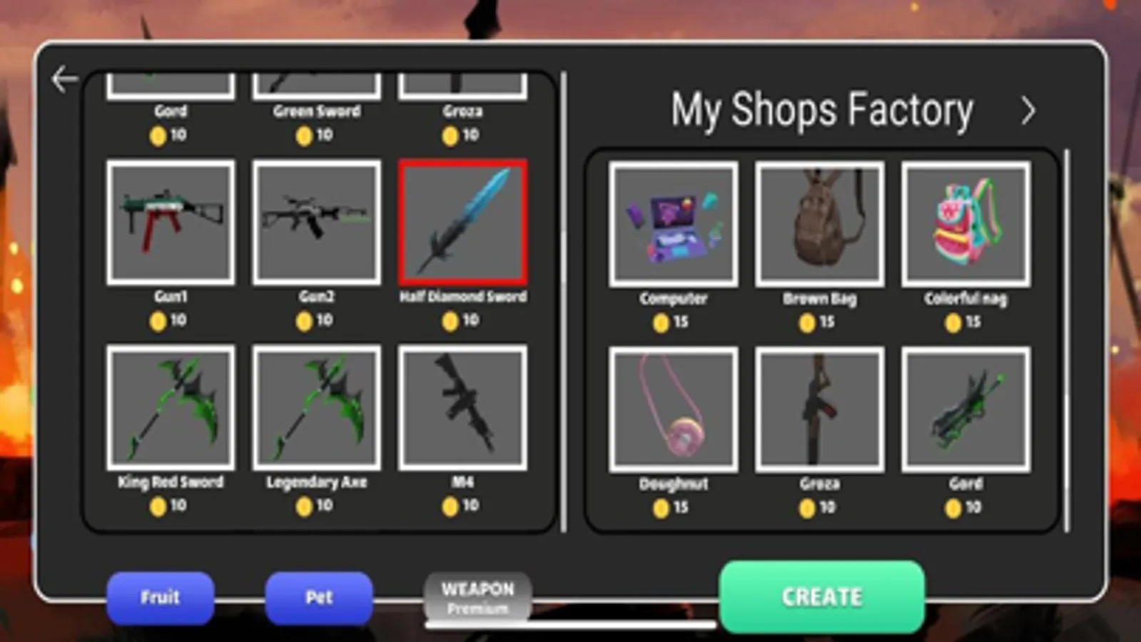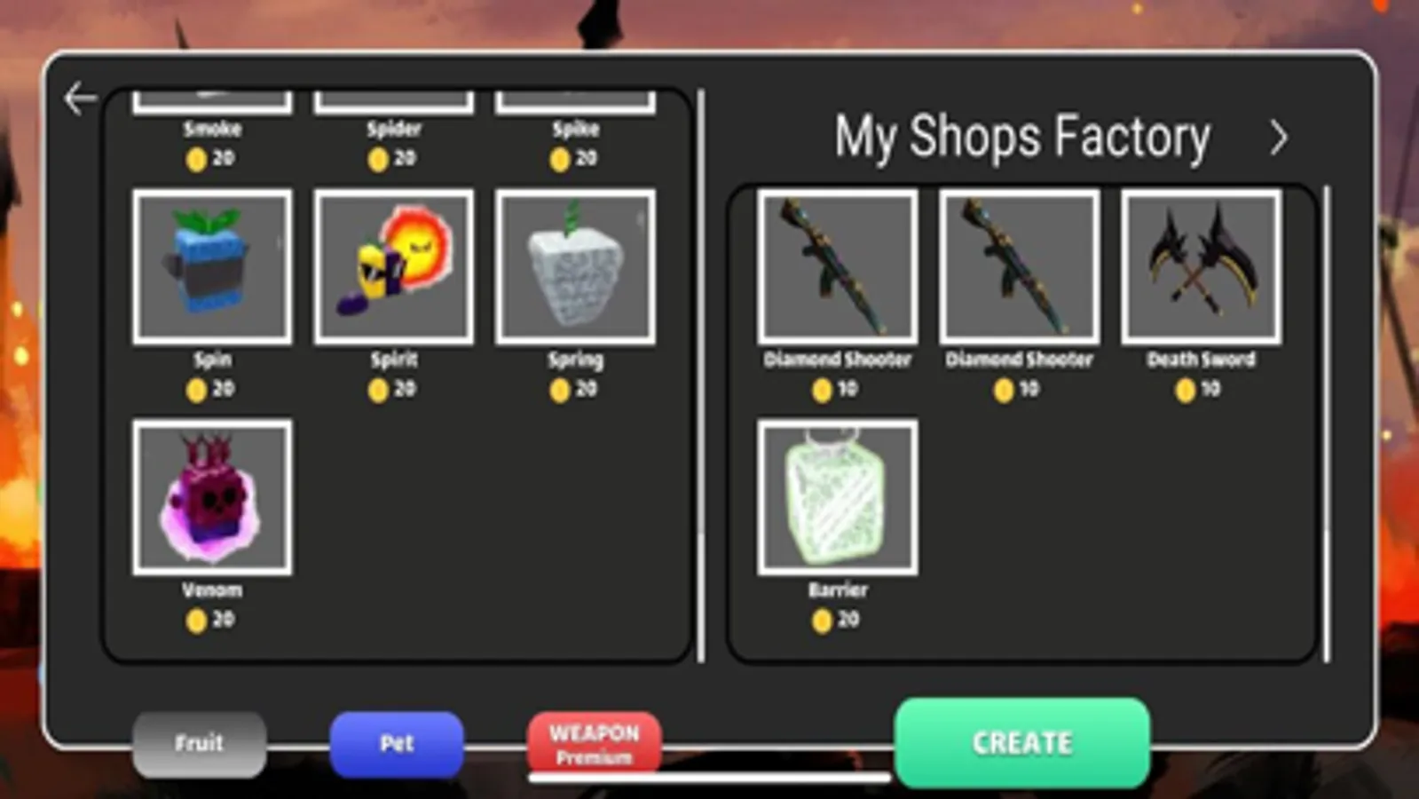 - Unique Shops: Skins, t-shirts, pets, pizza, Rare Fruits and dolls