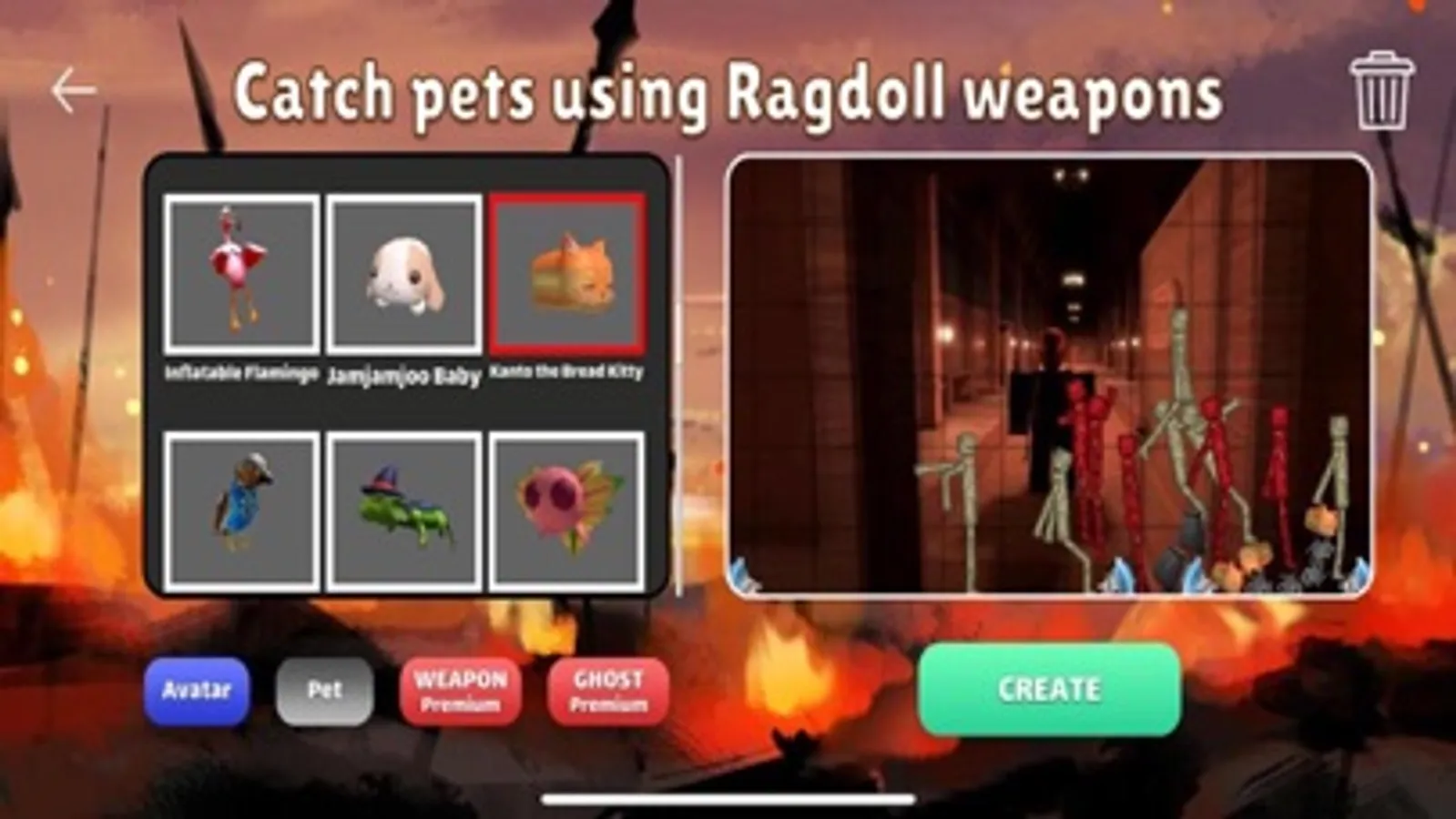 - Game: Catch your pets by adding your characters and choosing the best weapons.