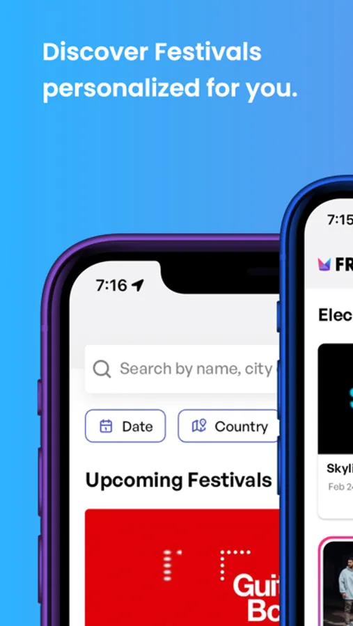 - Find festivals by genre, location, or date with personalized recommendations.