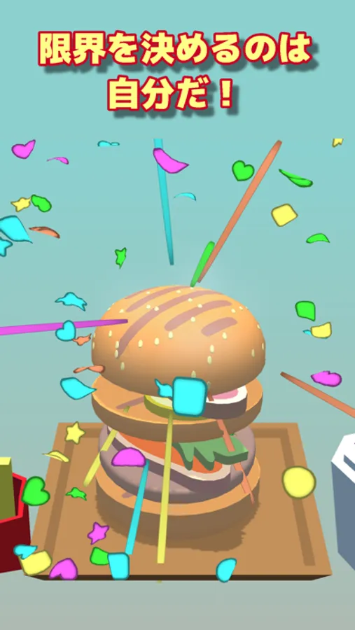 ただし、プレイヤーは注意しなければならないことがあります。積み上げる具材は、重心を考慮しなければなりません。重心がバランスを崩してしまうと、ハンバーガーが崩れ落ちてしまいます。プレイヤーは、バランスを保ちつつ、できるだけ高くハンバーガーを積み上げることが求められます。