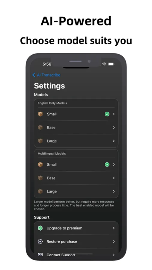 AI Transcribe provides AI-powered transcription services that can run completely on-device without internet connectivity.