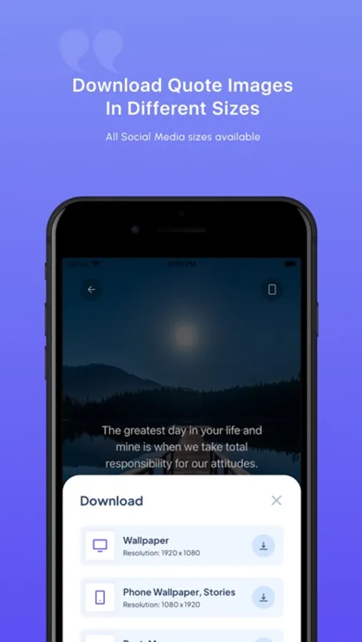 Download in different sizes (Wallpaper, Instagram Stories, Posts, Messages)