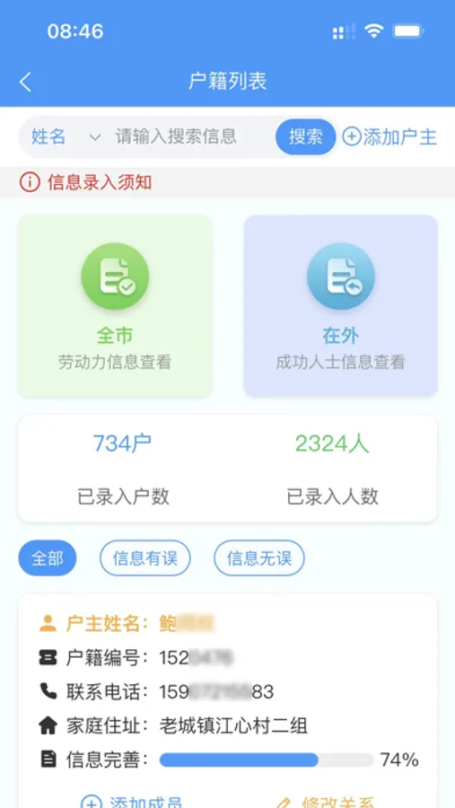 1、劳动力信息管理。对劳动力信息统一管理,用户可进行增删改查。