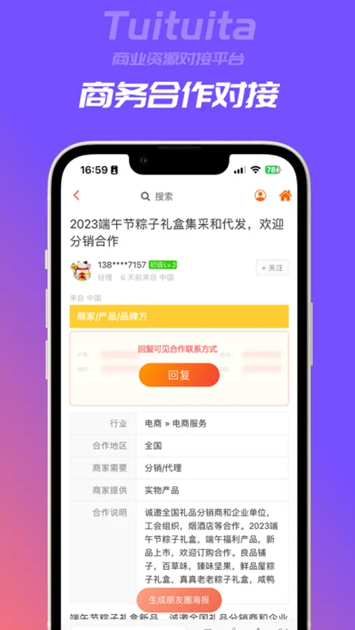 Tuituita,推推TA,链接B端,拓展C端,商业资源对接平台。