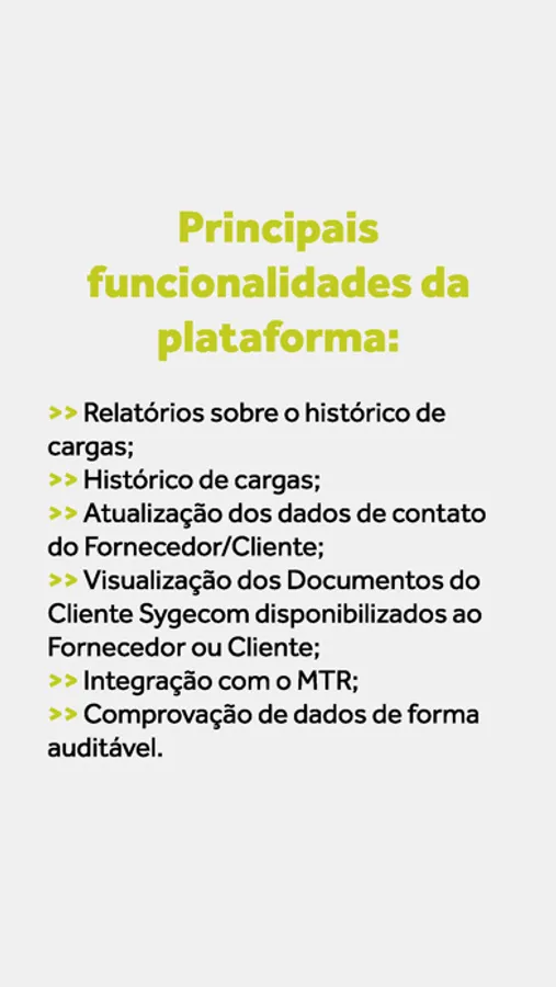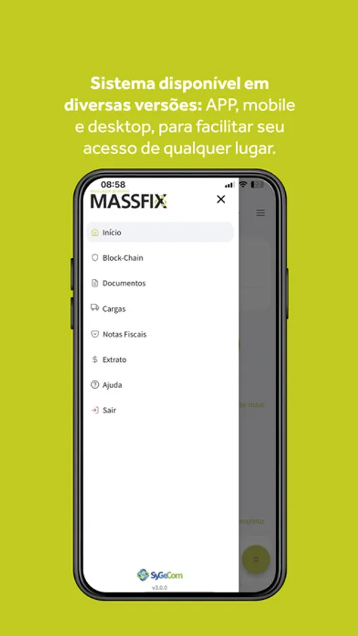 No app e-Massfix você que é cliente ou fornecedor da Massfix, tem acesso ao seu histórico de cargas, notas fiscais, rastreabilidade das cargas, extrato da conta-corrente, acesso a documentos da Massfix e relatórios sobre suas cargas.