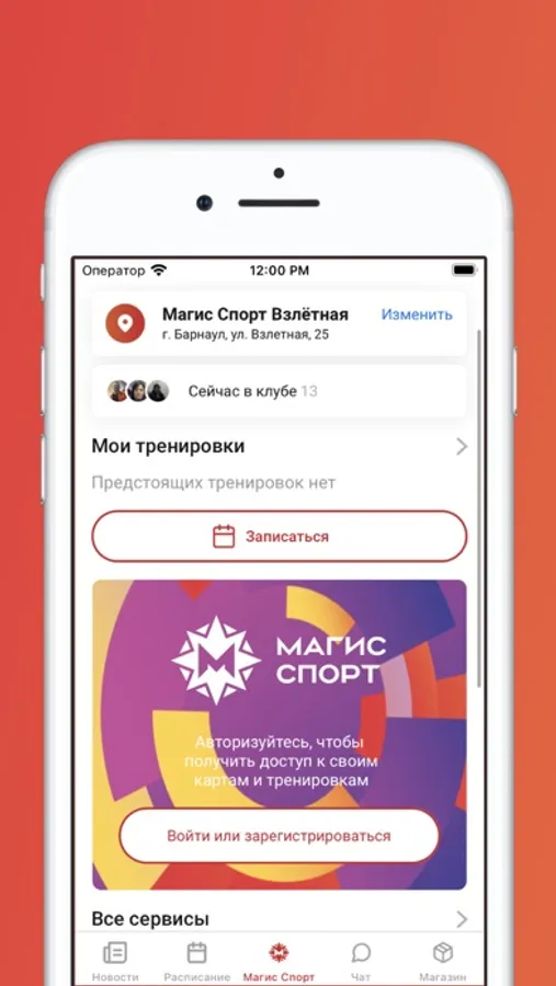 Мобильное приложение для клиентов фитнес-клубов Магис Спорт для удобного и быстрого доступа к информации о тренировках, расписании занятий и других услугах клуба.