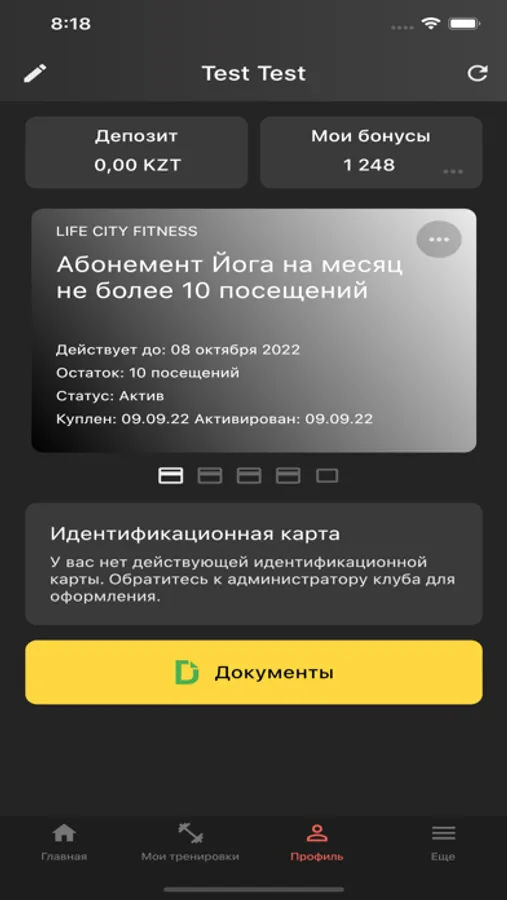 - Узнать срок действия клубных карт, абонементов и услуг.