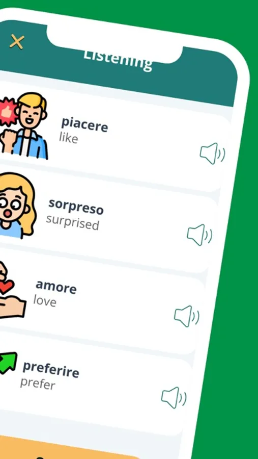 Study Italian words in the app Italian for Beginners A1 Level. Studying Italian has never been so easy and simple!