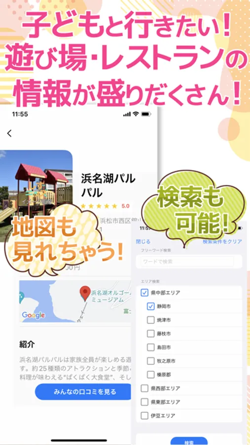 アプリをインストールするだけで県内の遊び場・レストランが探せる!