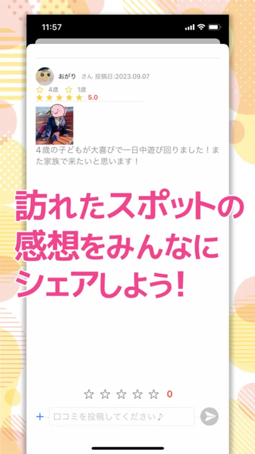 実際に訪れたスポットの情報を他のママさん・パパさんにシェアしましょう!