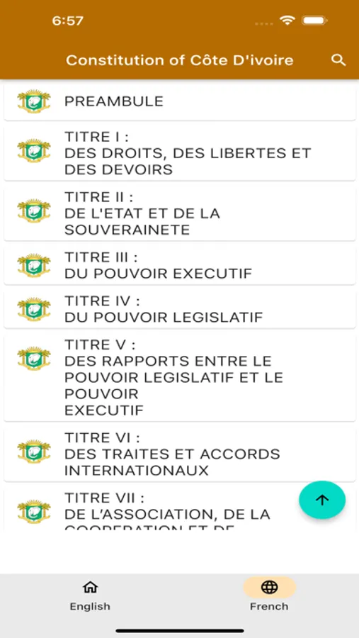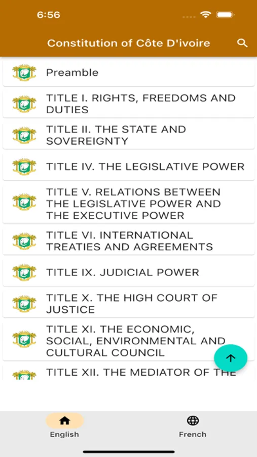 This app contains the constitution of the Republic of Côte d'Ivoire in both English and french.