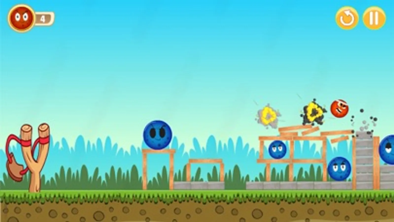 Characters and experience the fun gameplay red ball that has captured the hearts of millions of players. Angry Ball is a fun casual game where you use the slingshot to shoot balls and knock down enemy blocks, each red ball. Each level requires logic and mental ability that you will have many destructible objects like blocks, and red ball explosives. A slingshot with angry red balls and each with its color angry Ball is a battle game a free new game.