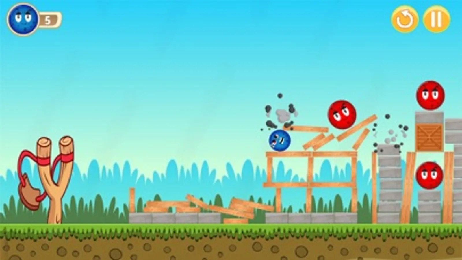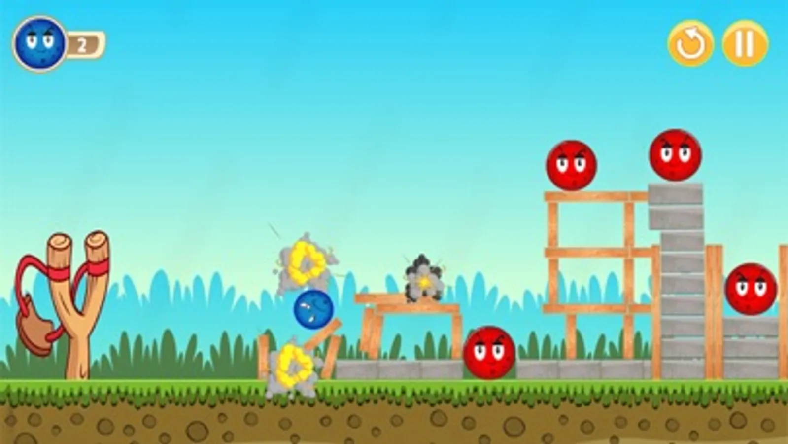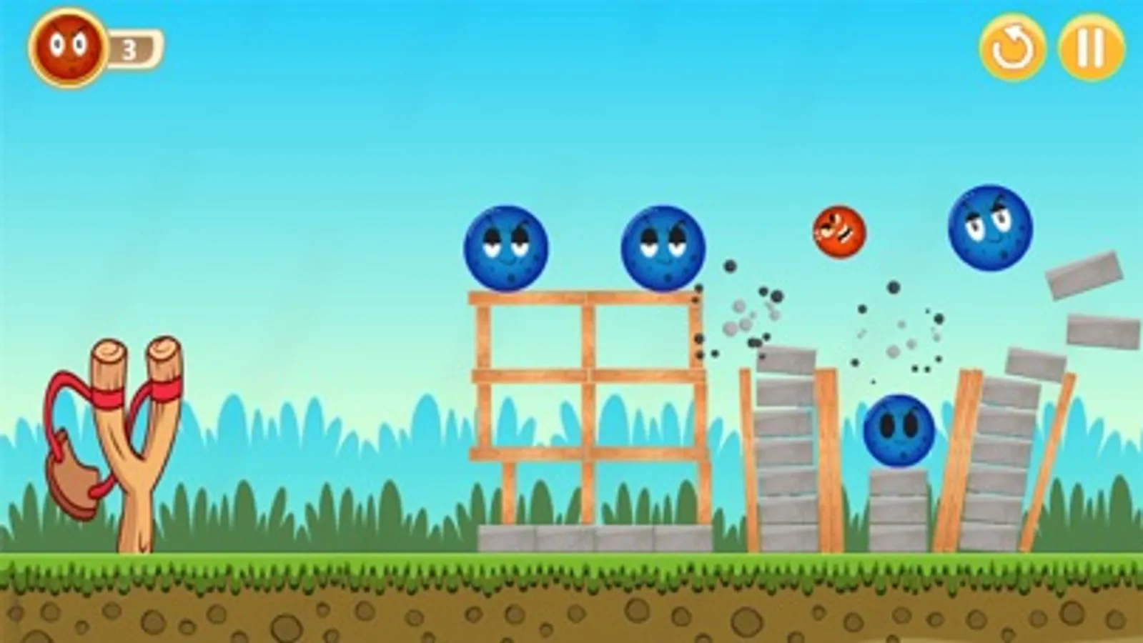 Every level's Difficulties are increased in the next higher level you will succeed to throw all the given number of balls into the enemy ball within the time limit, then you'll unlock the next level. But it would help if you got 3 starts to go to the next level. Inside the game, you will get some obstacles in between some of the birds that can hit your ball. it is so challenging gameplay. Enjoy this Game with your Angry blue and red balls.