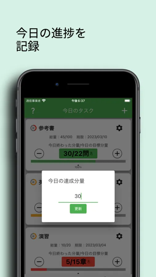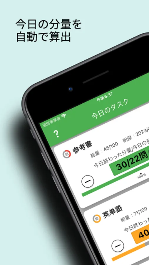 締め切りに間に合うよう、進捗に合わせて勉強計画を修正し、今日やるべき分量を教えてくれます。
