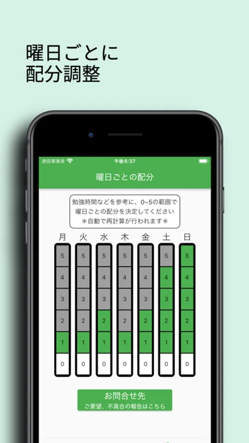 曜日ごとの配分を決める事で、更に適切な計算をしてくれます。