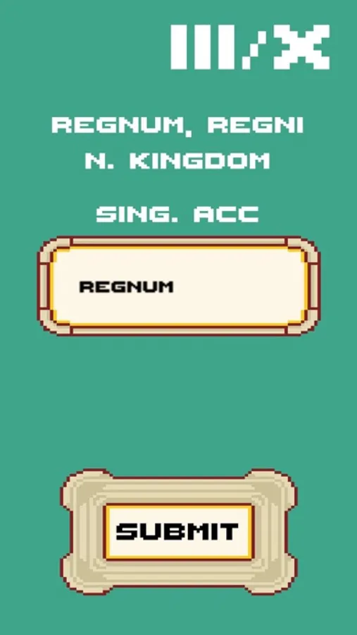 "Pedagogus–Latin noun review" is a Latin grammar review app which provides 500+ noun and pronoun practice questions.