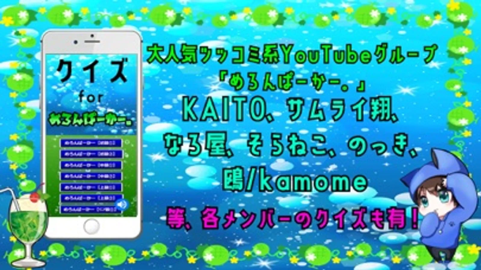 大人気ツッコミ系YouTuberグループ 「めろんぱーかー。」に関するクイズアプリです。