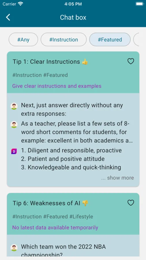 There are many simple "tutorial examples" to help you get started, understanding what AI can and can't do. Through these examples, you can learn how to communicate with AI.