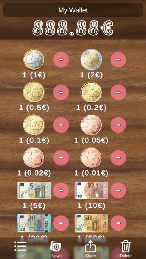 Count your savings easily and enjoyably with our Euro coin and banknote accounting app! Tap on the buttons for the different denominations and experience the satisfying sounds and animations as your income and expenses are tallied up. You can create multiple wallets to organize your accounts and export comprehensive reports for each one. Download our app now and take control of your finances like a pro with a touch of fun!