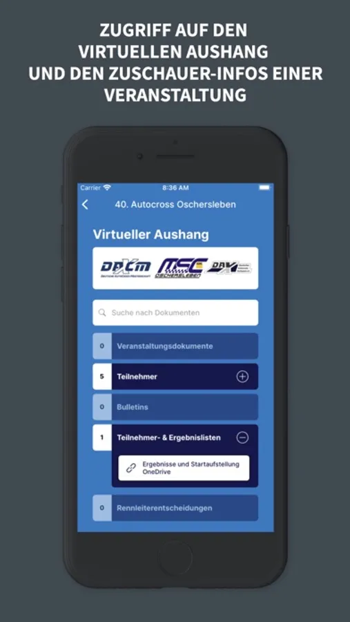 In der TW-Sportsoft App können Teilnehmer, Zuschauer, Sportwarte oder Organisationsmitglieder auf alle Dokumente einer Veranstaltung zugreifen.